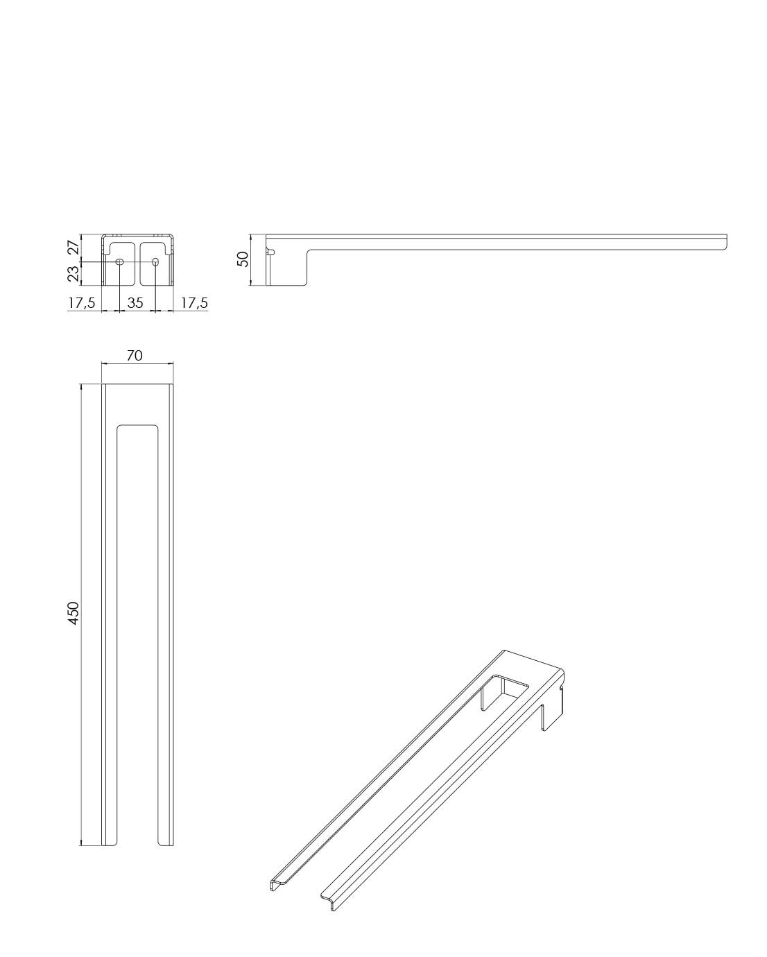 | Koko | 450 x 70 x 50 mm (LxKxS) |