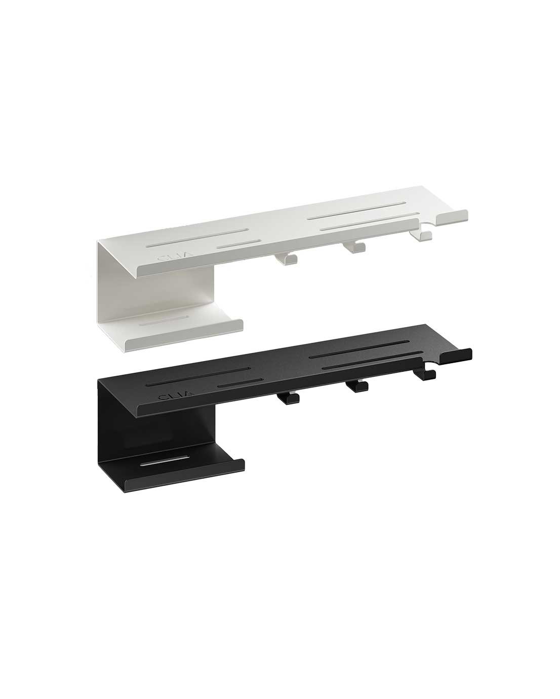 Monikäyttöinen seinähylly yhdistää säilytystilan ja fiksut ripustusratkaisut – mukana myös integroitu partahöyläteline. Erinomainen valinta esimerkiksi hotellin saniteettitiloihin.