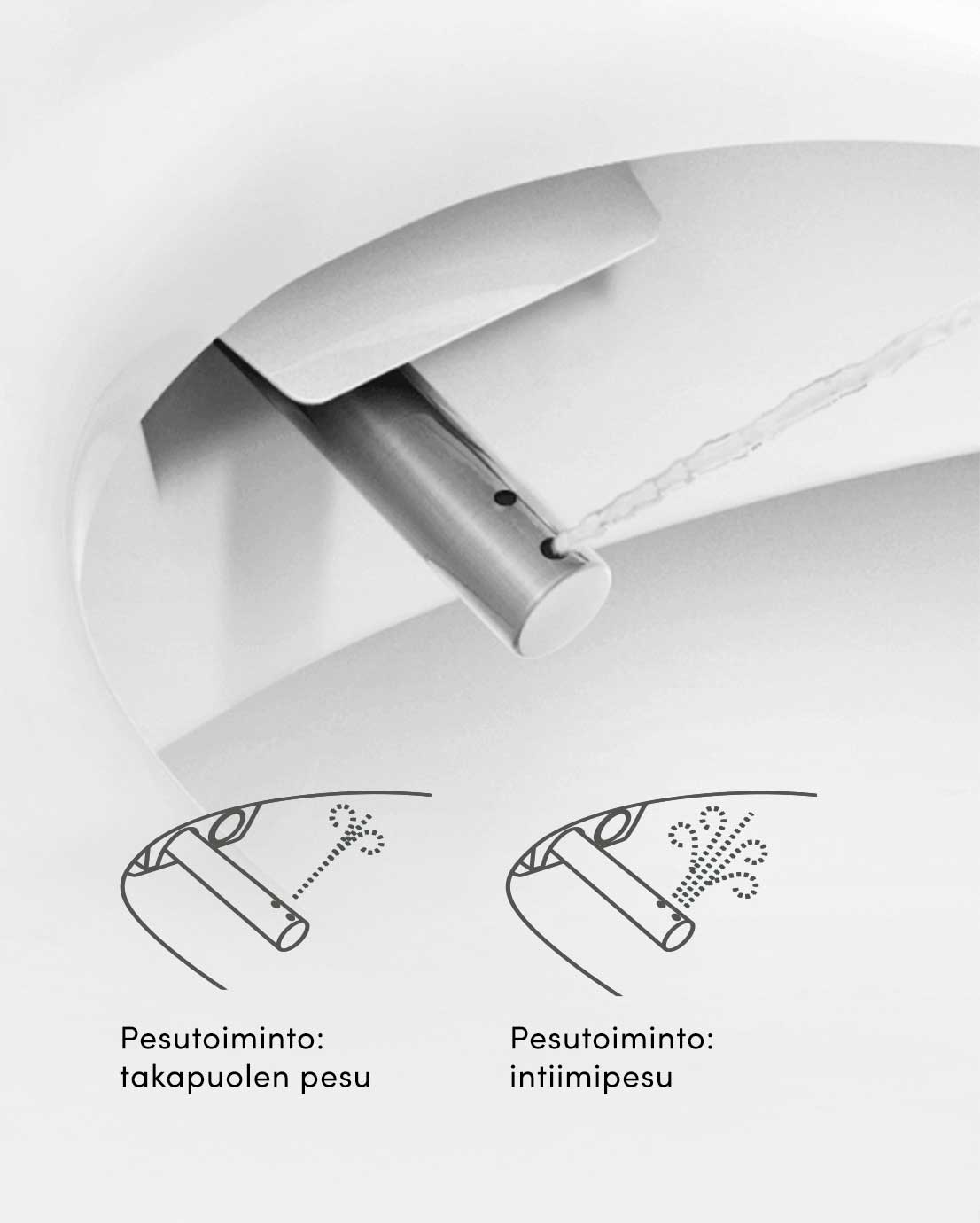 Oscillointitoiminto tarkoittaa, että bideen suutin liikkuu edestakaisin pesun aikana. Tämä laajentaa pesualuetta ja varmistaa perusteellisemman puhdistuksen, mikä parantaa hygieniaa. Erityisesti lapsille tämä toiminto on hyödyllinen.