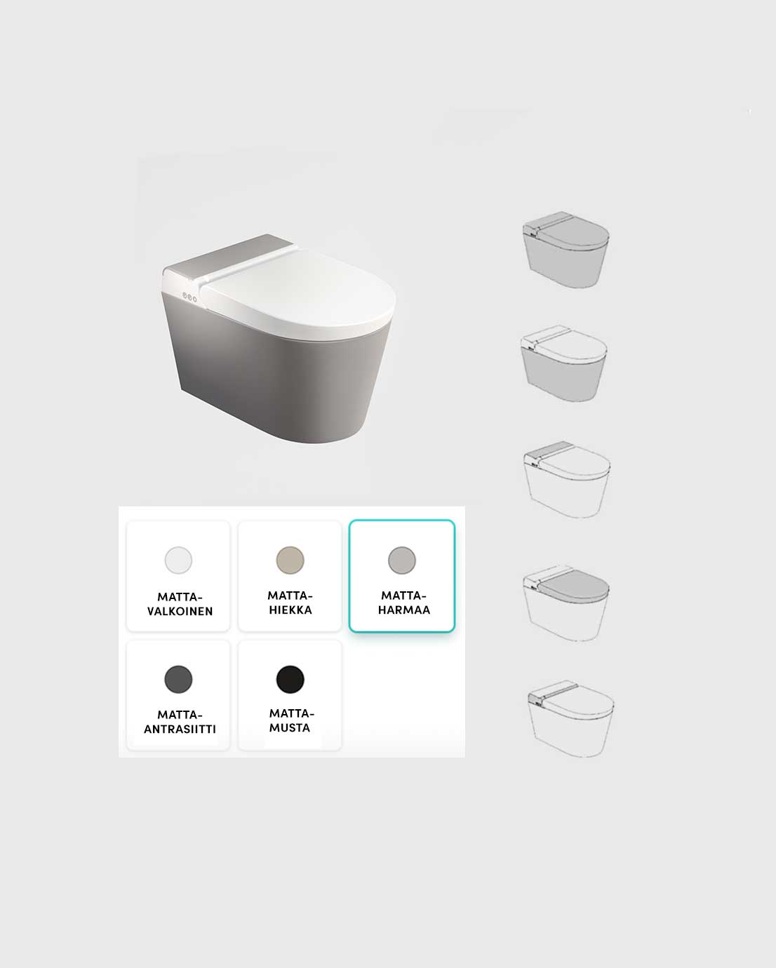 Hygea-WC-istuimen osat (WC-kulho, istuinkansi, bideekoteloinnin pohja ja kansi) ovat saatavilla mattapintaisina seuraavissa väreissä: