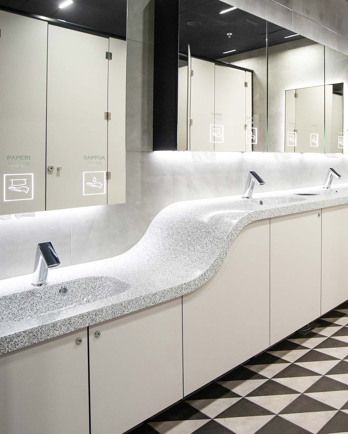 Tarjoamme laadukkaita vessan kalusteita, jotka tekevät julkisista saniteettitiloista käytännöllisiä ja toimivia. Pala-peilikaappimme ovat käytössä useassa Novosan WC-suunnittelukohteessa kuten kauppakeskus Triplassa, REDI:ssä, Veturissa ja Revontulessa. Suunnittele ja kalusta asiakas-WC tai lastenhoitohuone Novosanin tuotteilla – ergonomiset, turvalliset ja esteettiset ratkaisut julkisiin WC-tiloihin.
