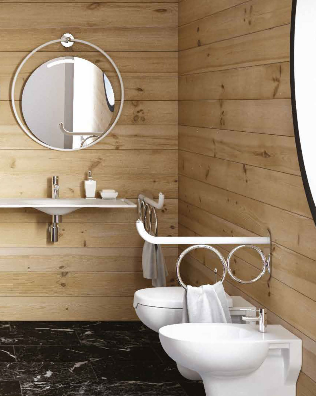 Deluxe-malliston upeat peilit täydentävät saniteettitilan ilmeen. Deluxe-sarja on suunniteltu vaativaan makuun – tämä upea mallisto sopii erinomaisesti esimerkiksi hotellien ja edustustilojen esteettömiin WC-tiloihin.