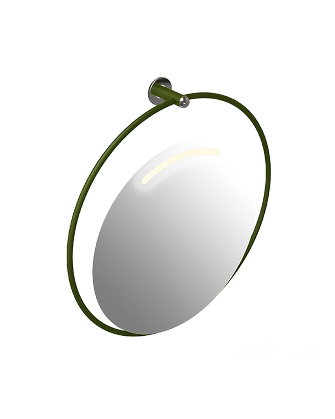 Kallistettava pyöreä peili LED-valolla ø 60 cm, tukeva putkirunko ø 70 cm. Runko on valmistettu kahdesta osasta pyöreää alumiiniputkea ø 16 mm, joissa on korroosionestokäsittely ja epoksipolyesteripinnoite. Pakkauksessa myös ruostumattomasta teräksestä valmistettu seinäkiinnitystappi, AISI 430, galvaanisella viimeistelyllä. Putkirunko värillinen ja muut osat krominvärisiä. Saatavana myös LED-valolla.