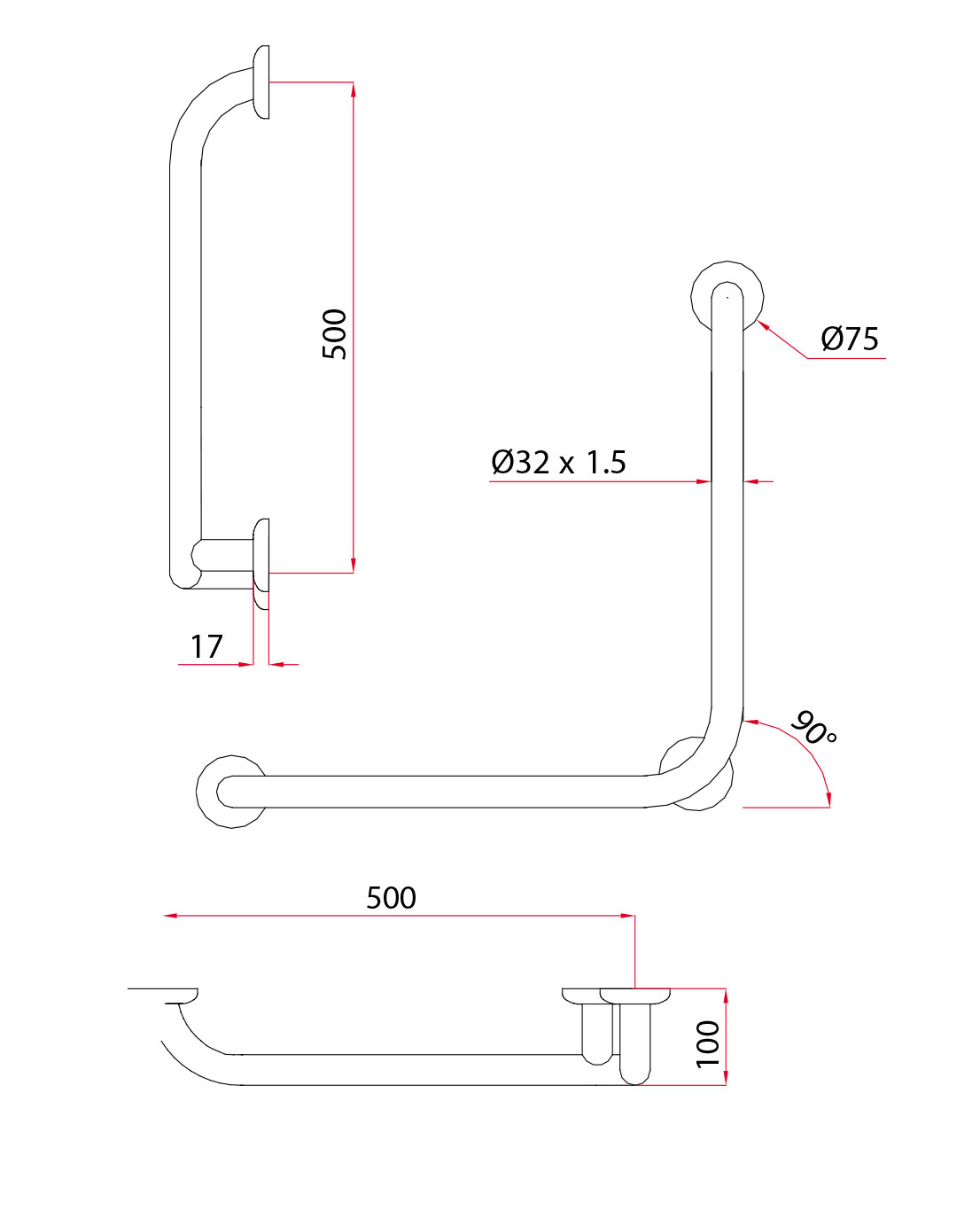 Valmistusmateriaali: teräsputki, joka on käsitelty ja pinnoitettu korroosiota estävällä suojauksella. Sisältää: Ø10 mm kiinnitysruuvit, RST-asennuslevyt 304, 6 reikää. Tukikahvaan on mahdollista tilata nylon-materiaalista valmistetun sähköä eristävän lisäosan (ei johda sähköä). Kysy lisää asiakaspalvelu@novosan.fi