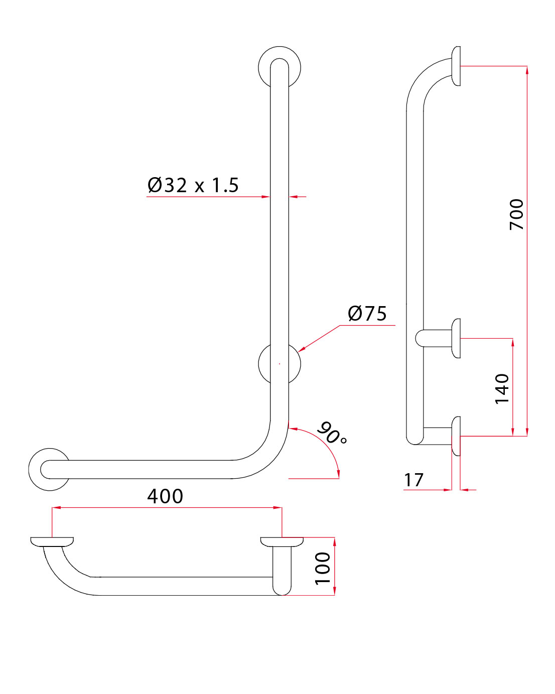 Valmistusmateriaali: teräsputki, joka on käsitelty ja pinnoitettu korroosiota estävällä suojauksella. Sisältää: Ø10 mm kiinnitysruuvit, RST-asennuslevyt 304, 6 reikää. Tukikahvaan on mahdollista tilata nylon-materiaalista valmistetun sähköä eristävän lisäosan (ei johda sähköä). Kysy lisää asiakaspalvelu@novosan.fi
